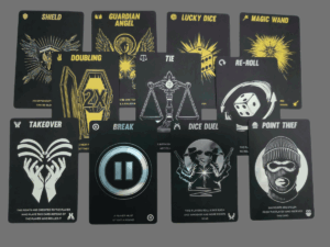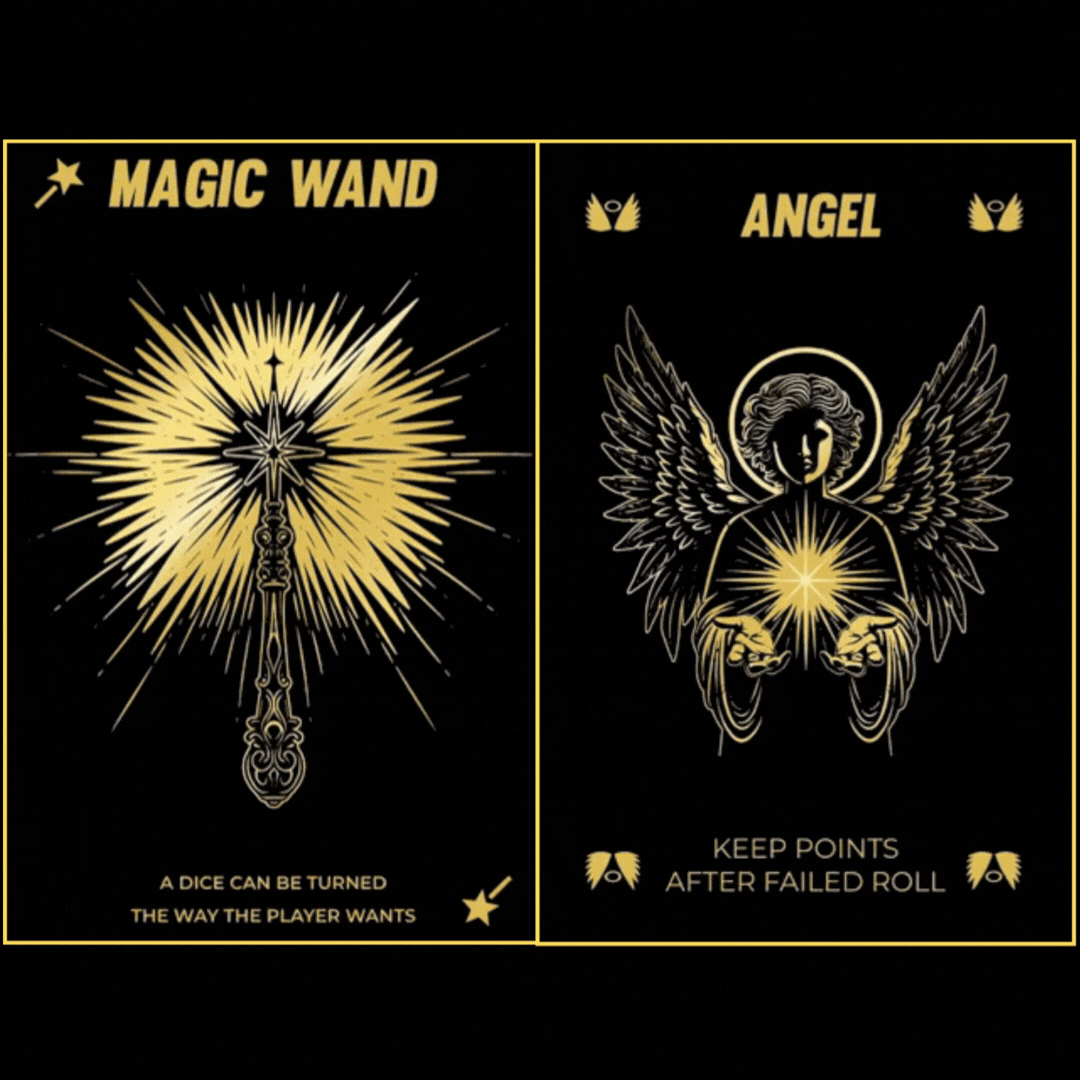 Die 11 Handkarten sind das Herzstück von FORTUNA: Goldene Glückskarten retten dich, verdoppeln Punkte oder zaubern dich aus der Patsche. Silberne Pechkarten dagegen klauen, blockieren oder schicken deine Gegner direkt ins Aus. Mit jeder Karte drehst du das Spiel – zu deinem Vorteil oder zum Ärger der anderen.